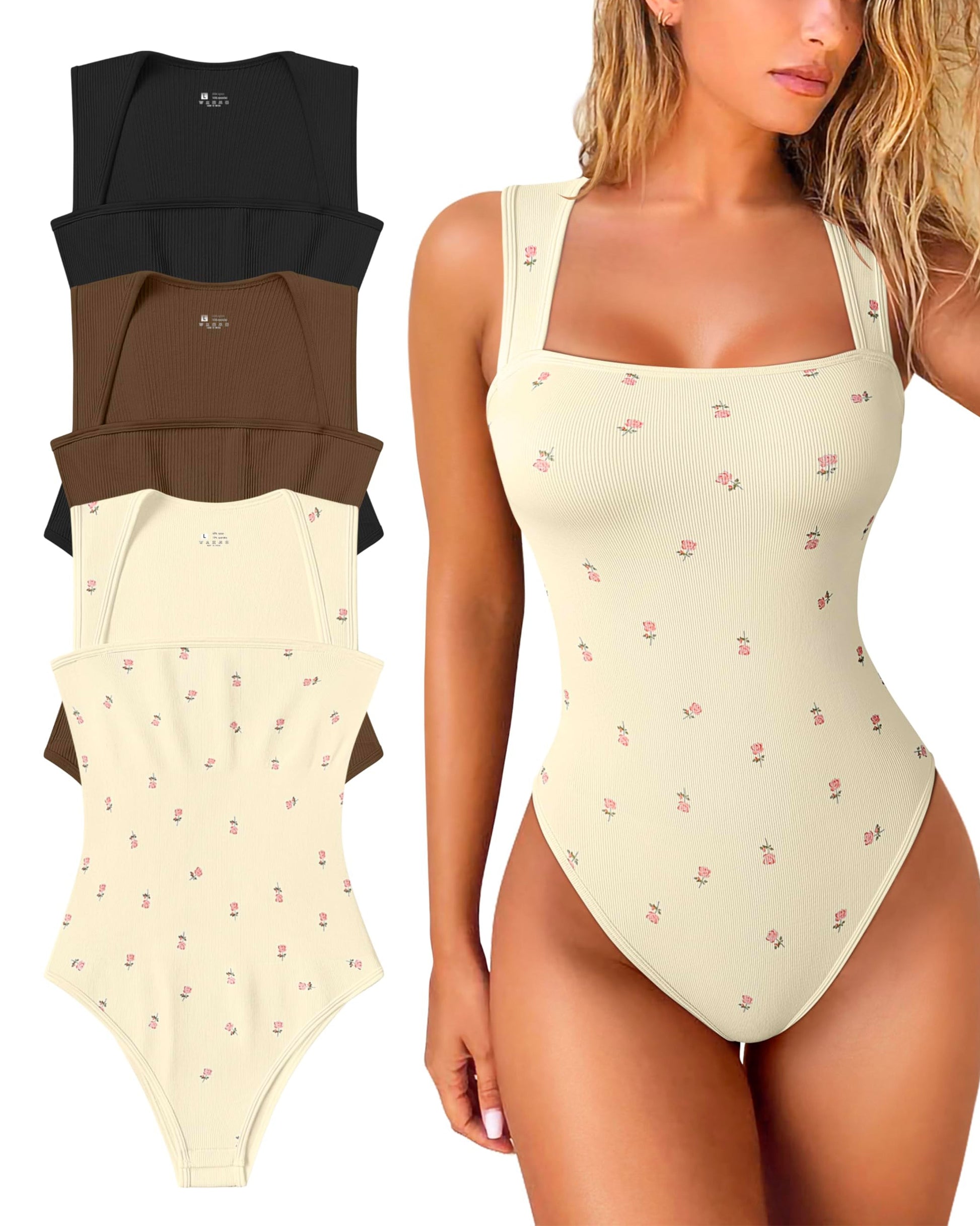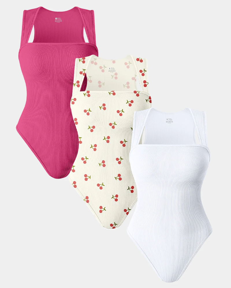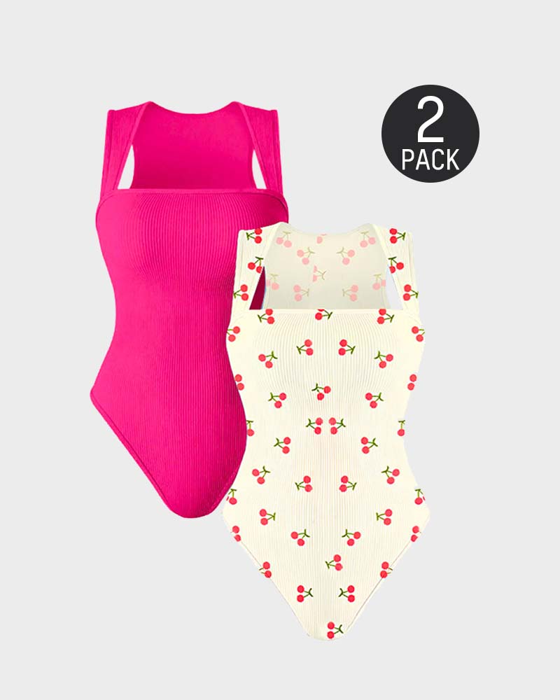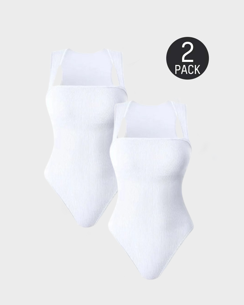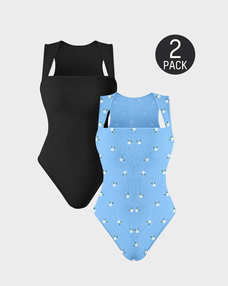 Square Neck Sleeveless Knit Ribbed Seamless Tummy Control Tank Tops Bodysuit